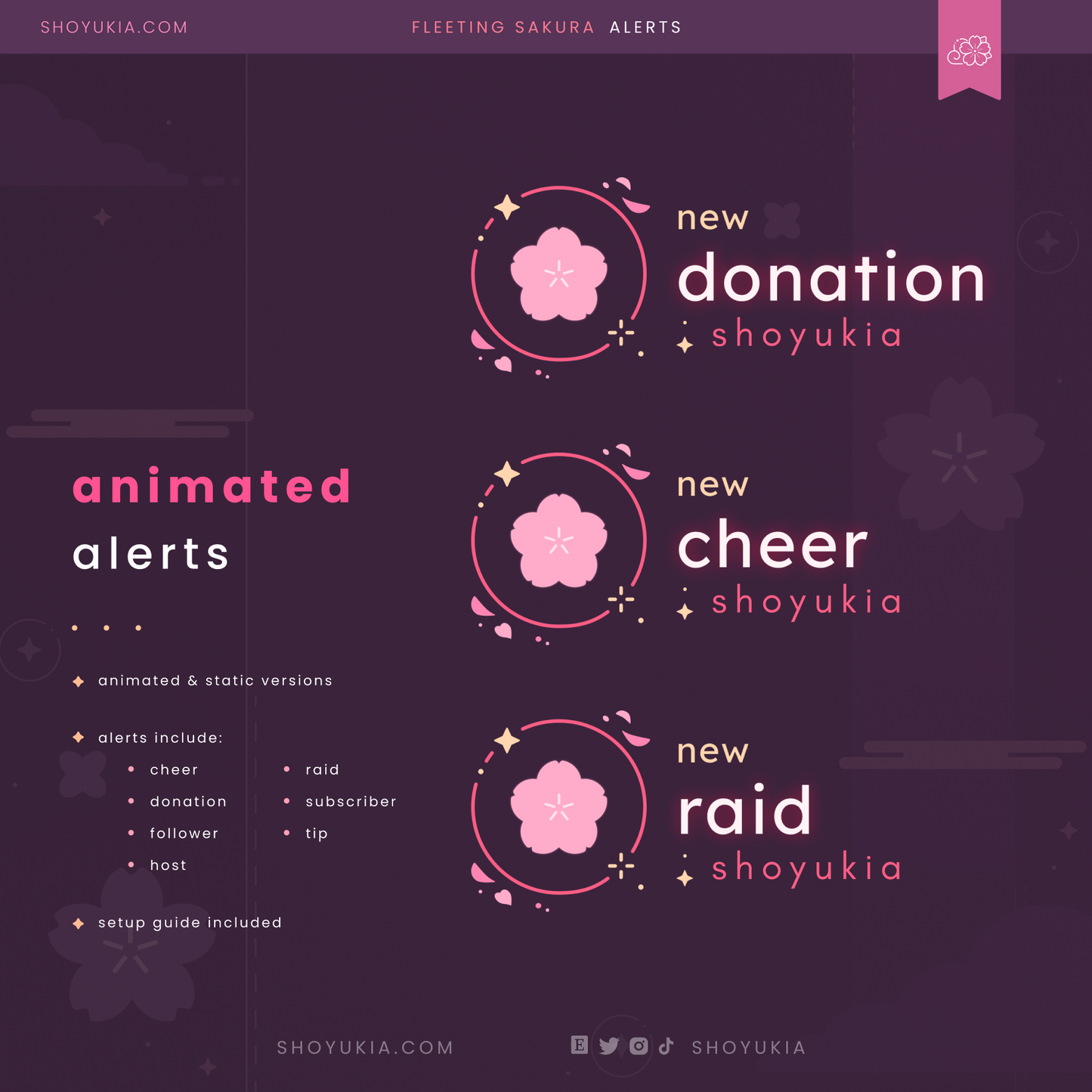 → 7 Animated & Static Alerts (cheer, donation, follower, host, raid, subscriber, tip)